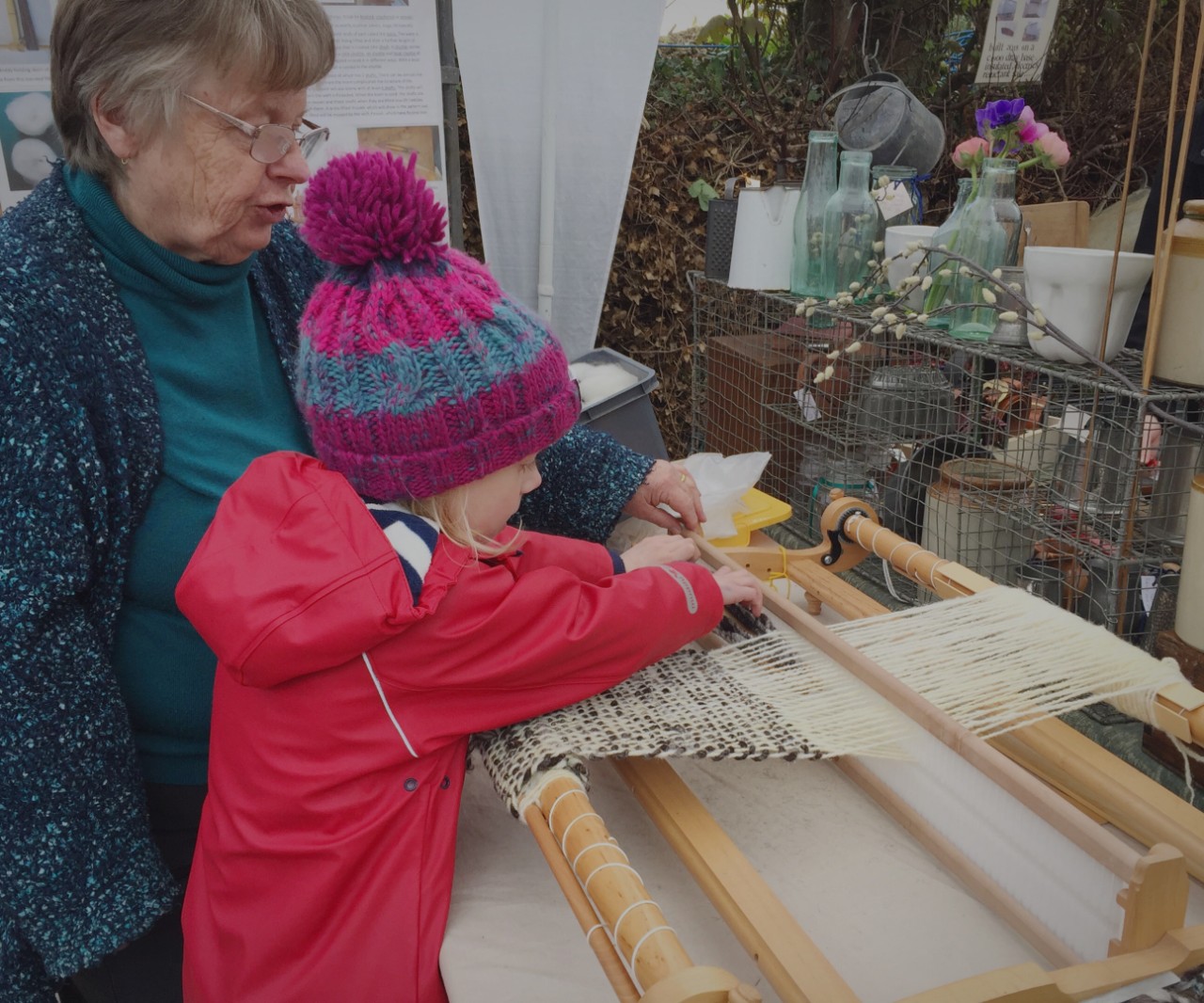 The oldest children were really interested in watching the black smiths working on axe heads. There was also the opportunity to have a go at weaving wool and learning about how the yarn was made.