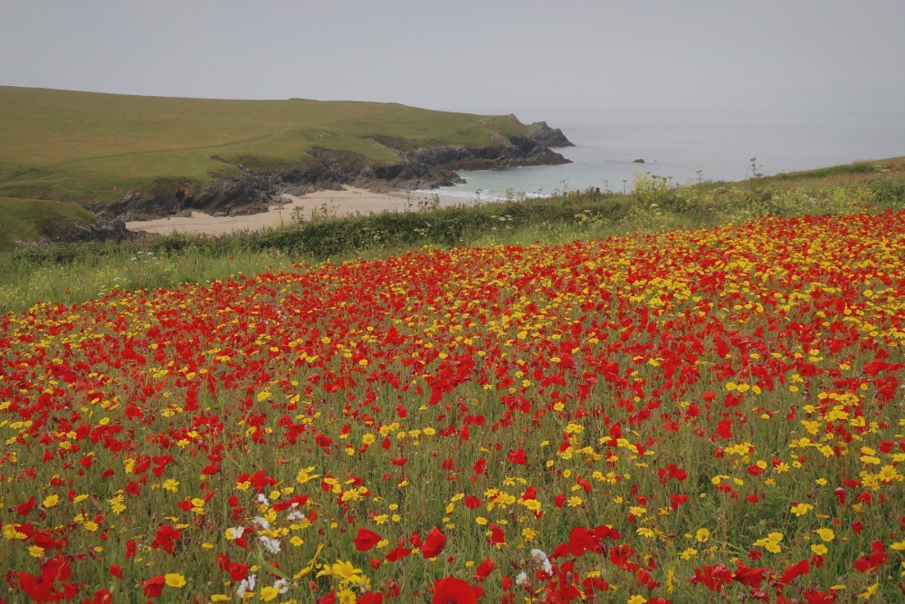 For just a few short weeks every year, the stretch of coast between the sandy cove of Polly Joke and Crantock Beach becomes awash with scarlet and yellow. Managed by the National Trust, this small section of the Cornish coastline has become a haven for some of Britain’s most endangered wild flowers.