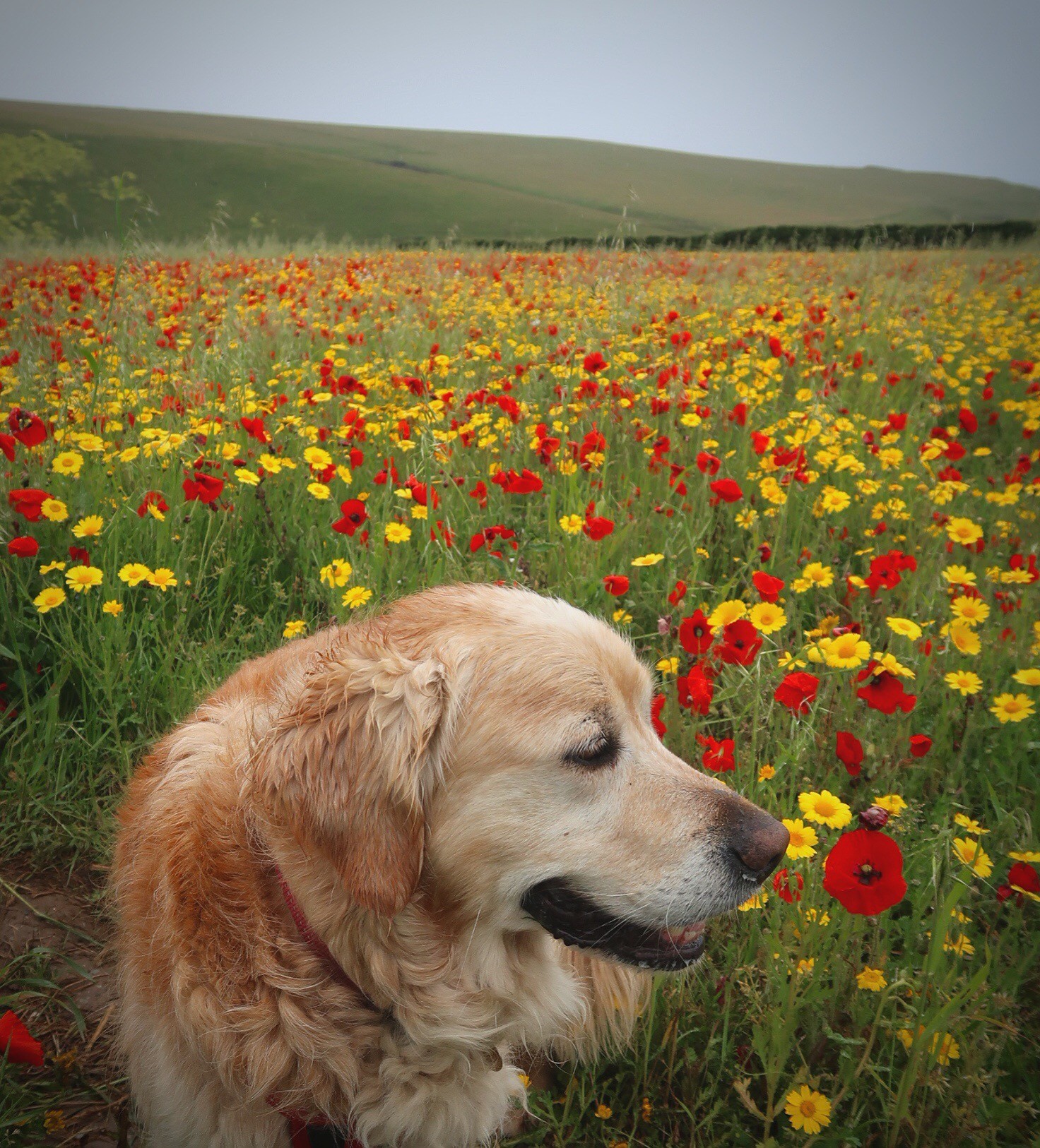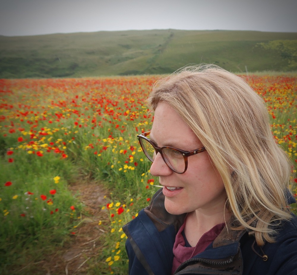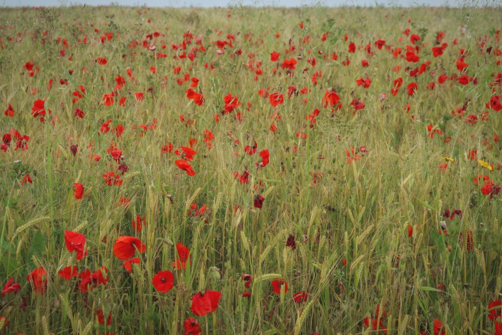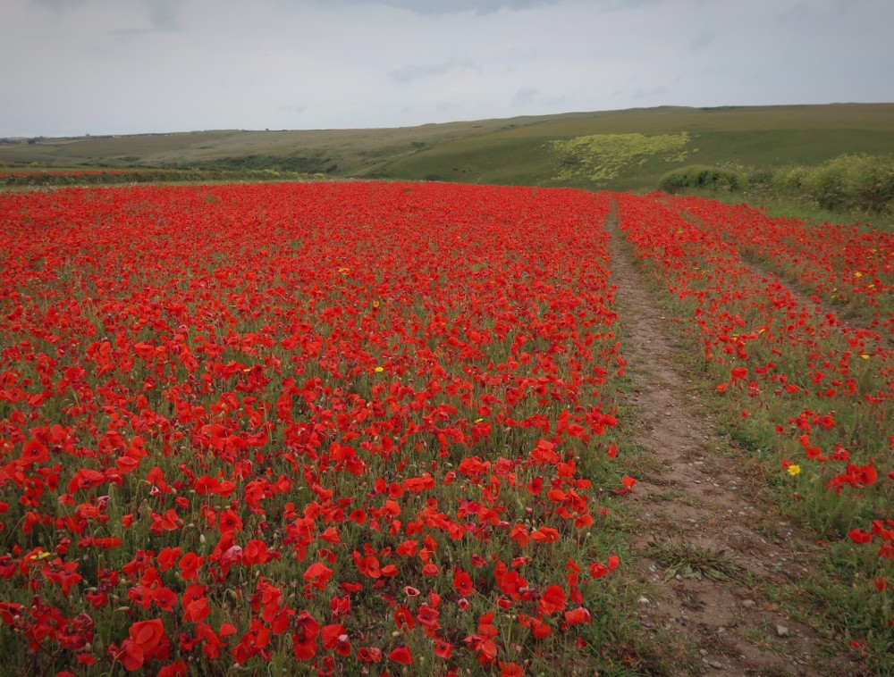 I visited on a wet Monday morning. The rain seemed to keep the majority of visitors who flock to these fields away. As a result we walked through the fields and around the headland that overlooks Polly Joke and didn’t see another soul. Just the sound of dozens of skylarks could be heard. The rain stopped and the remaining grey clouds provided a lovely moody backdrop for the poppies.