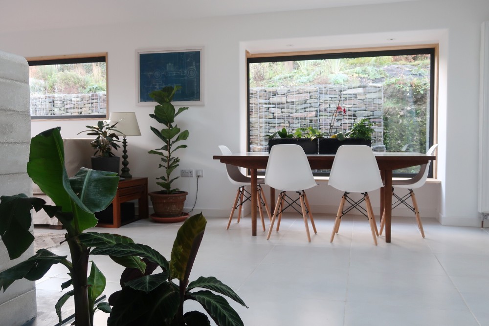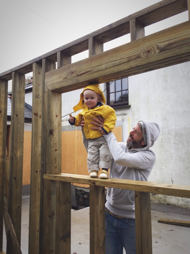 Before the foundations for the family room extension could begin, we needed to remove 90 plus tonnes of rock and earth from the terraced garden which rises up at the back of the house. This meant loosing about 3 meters of our garden.